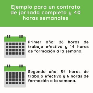 El tiempo de trabajo efectivo, será compatible con el tiempo dedicado a la formación teórica, y, no podrá ser superior al 65 por ciento, durante el primer año, o al 85 por ciento, durante el segundo, de la jornada máxima prevista en el convenio colectivo de aplicación en la empresa, o, en su defecto, de la jornada máxima legal.